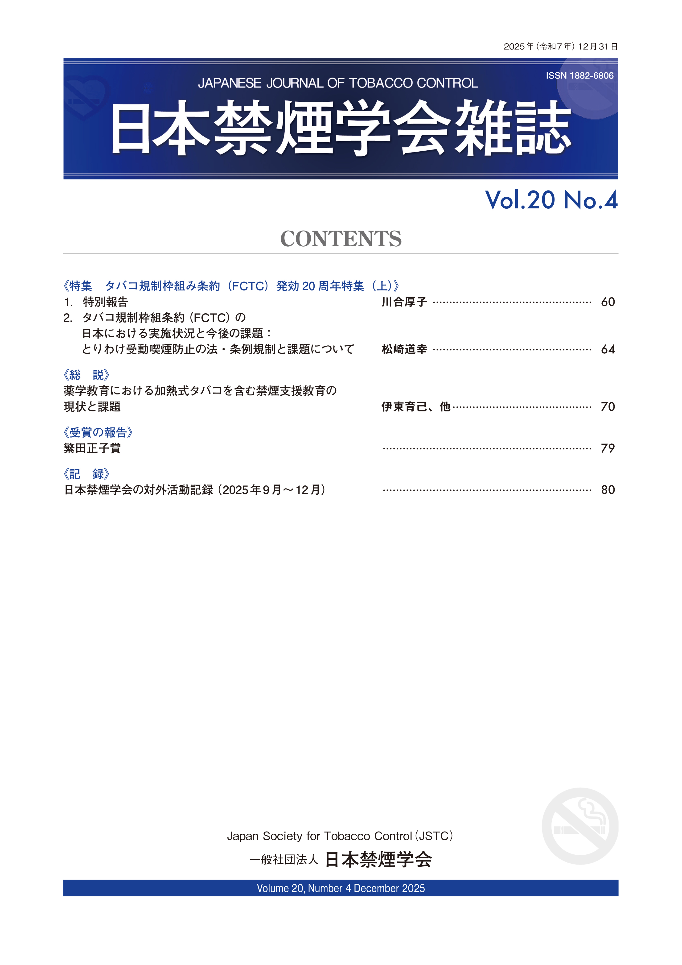 日本禁煙学会雑誌第20巻4号を公開しました