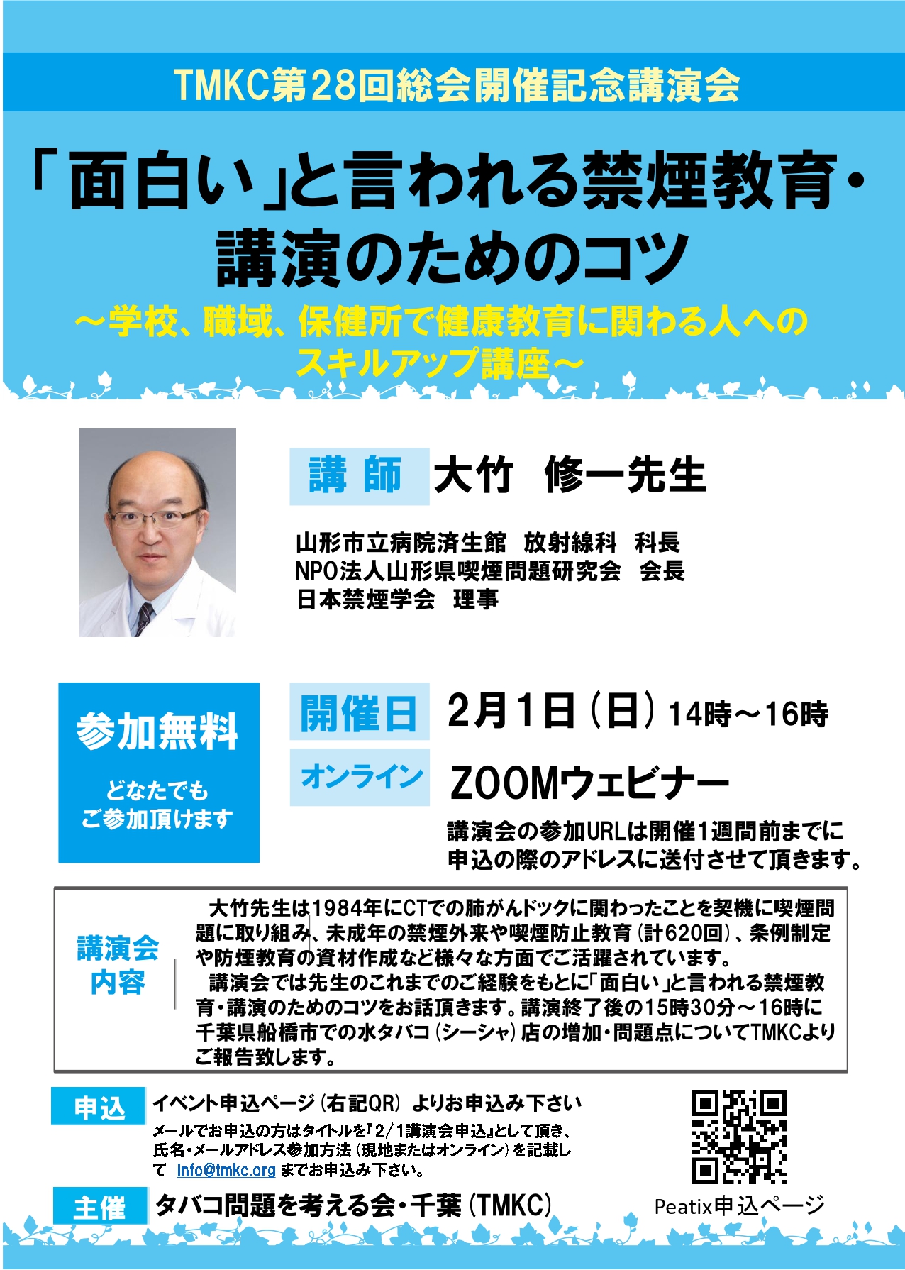 | 主催 | タバコ問題を考える会・千葉(TMKC) |